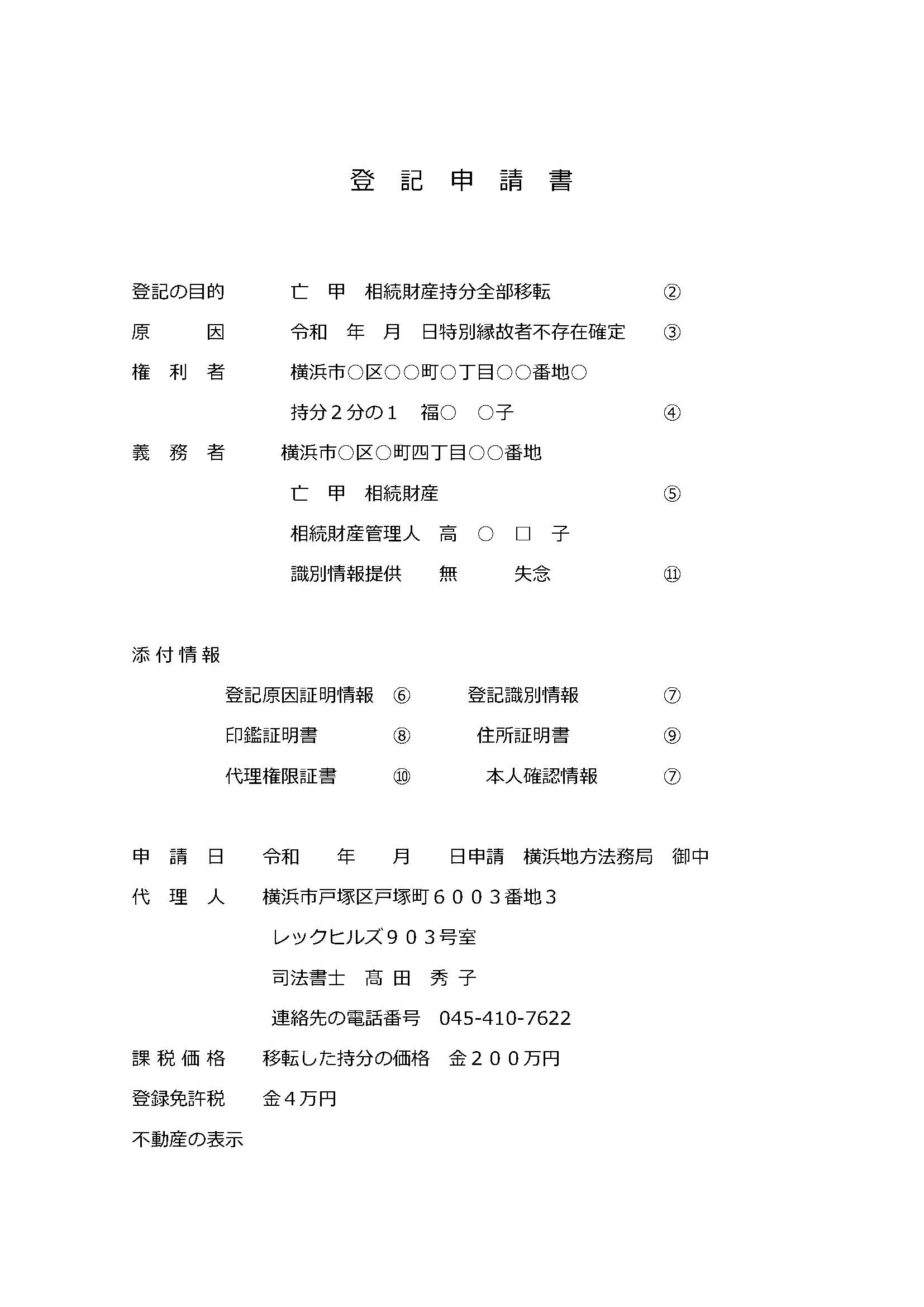 ⑦ 登記義務者の登記識別情報(又は登記済証)は、「亡甲」(被相続人)が所有権を取得したときの登記識別情報(又は登記済証)を提供します。なお、登記識別情報(又は登記済証)を提供することができないときは、その理由を記載します。この場合は、不動産登記法第23条第1項、第2項により登記官の事前通知による本人確認か、同条第4項により資格者代理人(不登規72条)による本人確認情報⑪を提供すべきものとされています。